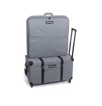 The elegant and sophisticated Designio for Brother Aveneer EV-1 Luggage Set resembles a vintage traveling case with modern details and vegan leather detailing wrapped in a handsome heather grey exterior. It is perfect for traveling, attending classes, or safekeeping in the home. This durable luggage set has a telescopic handle, classic black metal latches, and side handles for easy maneuvering. There are two side zipper pockets that house straps to securely attach the embroidery arm tote to the trolley, a luggage tag, and a C-to-C charging port. The 360-degree wheels are ideal for traveling and are easily removable for storage, so you can safely store your Aveneer EV-1 with this luggage set.