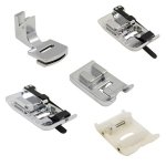 This foot is perfect for precise and easy joining of fabrics (even sheers and difficult fabrics). Hold fabrics in place while leaving a space to allow open decorative stitches such as open weave stitches. Reference marks are on the foot to increase accuracy. The foot can be used to line up and sew edgings such as lace to edges of other fabric. The centered blade enhances ability to follow the edge of the fabric.